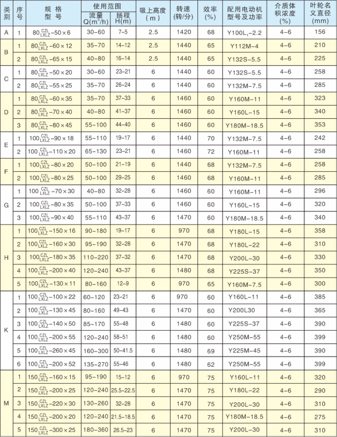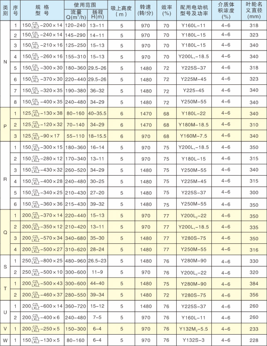 兩相(xiàng)流(liú)紙漿泵主要性能參數表